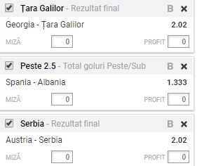 Biletul de cota 5.00 06.10.2017 de vineri este alcatuit din trei meciuri, toate din preliminariile Cupei Mondiale din Rusia: Georgia – Tara Galilor, Spania – Albania si Austria – Serbia.
