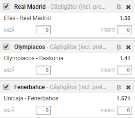 Unicaja are un adversar foarte greu in meciul de pe teren propriu: Fenerbahce. Turcii au castigat Euroliga pentru prima oara in istorie sezonul precedent si sunt principalii favoriti s-o castige si in actuala stagiune. In momentul de fata, Fenerbahce are doua victorii din tot atatea posibile in acest sezon. De partea cealalta, Unicaja ocupa locul sapte in campionatul din Spania, avand doua victorii si o infrangere. Cel mai bun pariu, in opinia noastra este victoria ”oaspetilor”, la o cota de 1,57. Bafta!