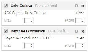Bilet cota 2.00 24.10.2017. V-am selectat doua meciuri sigure pentru biletul de cota 2.00 de mari: ACS Sepsi – CS U Craiova si Bayer Leverkusen – Union Berlin.