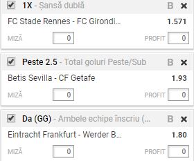 Bilet cota 5.00 03.11.2017. Am incheiat socotelile cu meciurile din cupele europene pentru un moment, iar acum ne indreptam atentia spre campionatele interne. Ti-am ales trei meciuri din Franta, Spania si Germania: Rennes – Bordeaux, Betis – Getafe si Frankfurt – Bremen.