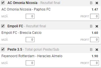 Bilet cota 5.00 21.12.2017. Intr-o zi cu fotbal rar prin Europa, iti realizam cu bilet format din trei meciuri care alcatuiesc o cota de aproape 5,00. Meciurile despre care vom discuta sunt Omonia Nicosia – Paphos, Empoli – Brescia si Feyenoord Rotterdam – Heracles Almelo.