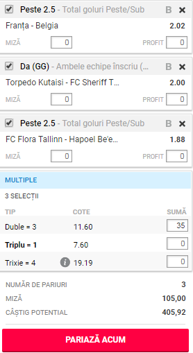 Cote foarte bune, peste 100 de selecții la fiecare meci de fotbal. Nu e neapărat pentru cei care pariază pe alte sporturi.