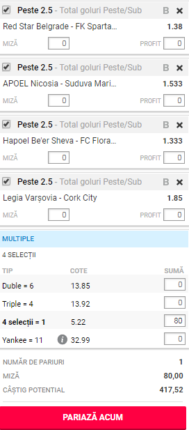 Bilet goluri 17 iulie 2018. Am selectat pe biletul nostru doar partide în care avem încredere că se vor înscrie multe goluri.
