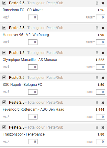 Cote foarte bune, peste 100 de selecții la fiecare meci de fotbal. Nu e neapărat pentru cei care pariază pe alte sporturi.