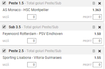 Bilet goluri 31.01.2018. Pentru miercuri, ti-am ales trei meciuri destul de interesante: AS Monaco – Montpellier, Feyenoord – PSV Eindhoven si Sporting Lisabona – Vitoria Guimaraes.