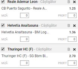 Bilet Handbal 08.11.2017. Cum fotbalul de calitate a parasit peisajul pana la meciurile echipelor nationale, iti recomandam un bilet format din meciuri de handbal: Puerto Sagunto – Ademar, Anaitasuna – La Rioja, ambele din campionatul masculin al Spaniei, si confruntarea Thuringer – Bietigheim, din prima liga feminina a Germaniei.