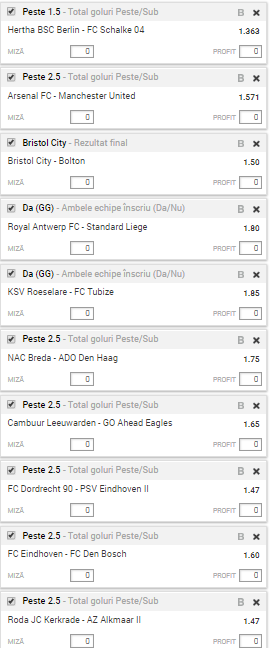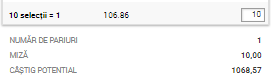 * Aşa cum îţi spuneam mai sus, cota totală a biletului este de 106.86! Am decis să pariez 10 de ron pentru un câştig potenţial de 1060 de lei!