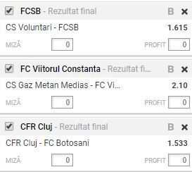 Bilet Romania 13-15.10.2017. Weekend-ul acesta incepe returul Ligii 1, o data cu etapa cu numarul 14. Iti recomandam trei meciuri: FC Voluntari – FCSB, Gaz Metan – FC Viitorul si CFR Cluj – FC Botosani.
