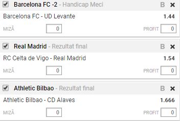 Bilet Spania etapa 18. Duminica se joaca cinci meciuri din runda cu numarul 19 din La Liga. Pentru tichetul nostru de astazi ti-am ales trei din ele: Barcelona – Levante, Celta Vigo – Real Madrid si Athletic Bilbao – Alaves.
