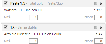 Alvaro Morata in duel cu Mustafi Bilet VIP 05.02.2018. Chiar daca nu avem o cota totala foarte mare (1,90), cele doua meciuri propuse de noi la biletul VIP de luni sunt foarte bune si au sanse mari sa fie ”verzi”. Jucam meciul din Premier League, Watford – Chelsea si Arminia Bielefeld – Union Berin, din liga secunda a Germaniei.