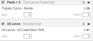 Meciul se disputa marti seara, de la ora 15:30, si conteaza pentru etapa cu numarul 12 din esalonul al treilea din Italia. Trapani este pe locul patru, cu 21 de puncte acumulate, in timp ce Rende este la patru lungimi in spate, pe pozitia cu numarul sapte. Trapani are evolutii foarte solide pe teren propriu, pierzand o singura data in acest sezon. O data ce ne-am uitat peste meciurile jucate de formatia gazda, vedem posibilitatea de a castiga bani, mizam pe un meci cu minimum doua goluri. Trei din ultimele patru meciuri disputate de Trapani au avut o medie de peste 2,5 goluri. Rende este echipa care nu prea reuseste sa marcheze, insa acest aspect poate fi ”recuperat” de Trapani, care are al doilea atac, dupa Lecce, ca perfromante.