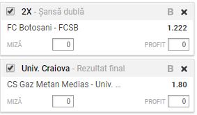 Bilet VIP 10.12.2017. Am ajuns la penultima etapa a campionatului, inainte de pauza de iarna. Duminica se disputa doua meciuri din Liga 1 si incercam sa obtinem un profit cu ele. De la ora 17:00, Gaz Metan Medias intalneste Universitatea Craiova, iar de la 20:00, FCSB joaca pe terenul lui FC Botosani.