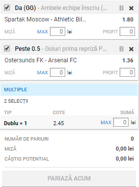 Cote foarte bune, peste 100 de selecții la fiecare meci de fotbal. Nu e neapărat pentru cei care pariază pe alte sporturi.