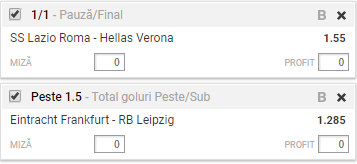 Bilet VIP 19.02.2018. Începuturile de săptămână pot fi foarte dificile, nu doar pentru cei care au avut weekend liber și se întorc de dimineață la muncă, ci și pentru pariori. Ca să-ți ușurăm muncă, îți oferim un tichet cu șanse mari de reușită, format din două meciuri: Lazio – Verona și Frankfurt – RB Leipzig. Partidele ne oferă un curs final de 2,00, unul excelent având în vedere că ponturile propuse de noi sunt realizabile!
