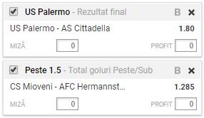 Bilet VIP 20.11.2017. Am terminat excelent saptamana trecuta la aceasta sectiune! Patru din ultimele cinci tichete VIP (Detalii AICI) s-au dovedit a fi ”drepte”. Speram sa-ti oferim bilete castigatoare si saptamana aceasta, care incepe luni cu doua partide: Palermo – Cittadella si CS Mioveni – Hermannstadt.