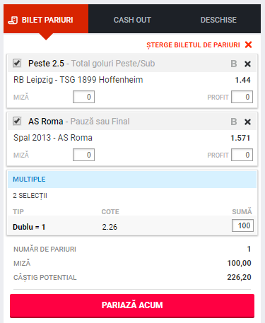 Cote foarte bune, peste 100 de selecții la fiecare meci de fotbal. Nu e neapărat pentru cei care pariază pe alte sporturi.