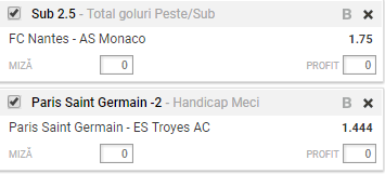 Bilet VIP 29.11.2017. Ti-am ales doua meciuri din campionatul francez pentru tichetul nostru de miercuri: FC Nantes – AS Monaco si PSG – Troyes.