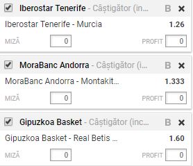 Ultimul meci al biletului nostru din baschet este cel pe care Gipuzkoa il joaca pe teren propriu impotriva lui Real Betis, incepand cu ora 21:00. Este unul din meciurile echilibrate ale serii. Ambele sunt fara punct dupa ce au pierdut in prima etapa, iar ultimele trei meciuri directe dintre cele doua echipe s-au terminat la o diferenta de sub 10 goluri. Ce-i drept, pe toate le-a castigat Real Betis. Scoruri: 86-80, 86-76 si 69-67. Au fost destul de stranse meciurile, iar rezultatul putea fi oricand invers! Iti recomandam sa mizezi pe victoria echipei gazde, la o cota foarte buna de 1,60. Bafta!