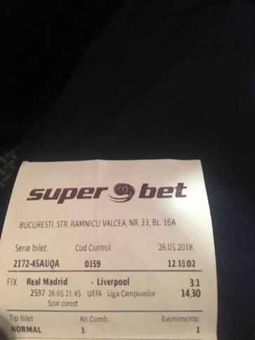 După prima repriză a meciului, se părea că multe bilete vor cădea. 0-0 a fost la pauză, iar Liverpool părea că poate face față celor de la Real Madrid. Accidentarea lui Salah din prima parte a jocului și cele două gafe incredibile ale lui Karius le-au băgat românilor o mulțime de bani în buzunar.