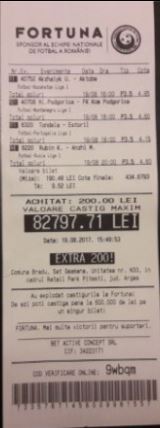 Bilete pariuri castigatoare. Un parior din județul Arges a castigat aproape un miliard de lei vechi dupa ce a plasat un bilet cu patru meciuri la o agentie. Nu avea o oferta prea bogata, asa ca a pariat pe meciuri din Kazahstan, Rusia, Portugalia si Muntenegru.