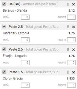 Estonia are un meci relativ usor in Gibraltar. Confruntarea are loc sambata seara, incepand cu ora 21:45. Formatia gazda nu a reusit sa castige niciun punct in aceste preliminarii, piarzand toate cele opt meciuri. De partea cealalta, Estonia are o serie de doua meciuri fara infrangere: 0-0 cu Grecia si 1-0 cu Cipru. Din aceasta grupa, Belgia deja a obtinut calificarea, iar Bosnia si Grecia se vor lupta pana in ultima etapa pentru locul de baraj. Revenind la meciul Gibraltar – Estonia, iti recomandam sa mizezi pe un meci cu minimum trei goluri, la o cota de 1,75.