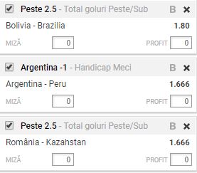 Biletul de cota 5.00 05.10.2017 de joi este format exclusiv din meciurile de calificare la Cupa Mondiala din Rusia: Bolivia – Brazilia, Argentina – Peru si Romania – Kazahstan.