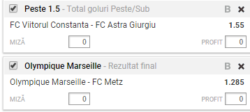 Biletul Zilei 02.02.2018. Dupa o pauza de o luna si jumatate, campionatul nostru revine. Viitorul Constanta – Astra Giurgiu este unul din cele mai interesante meciuri ale etapei. Pe langa acest meci din Liga 1, iti mai recomandam unul din Franta: Olympique Marseille – FC Metz, programat la ora 21:45.