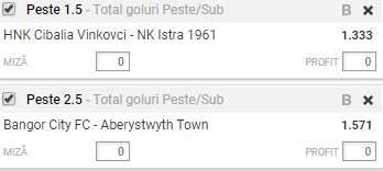 Mergem in prima liga a Tarii Galilor pentru ultimul meci al biletului nostru. Confruntarea dintre Bangor si Aberywyth are loc marti seara, de la ora 21:45 si conteaza pentru etapa cu numarul 13 din Premier League. Aici pariem pe mai multe goluri ca in Croatia, mai exact, ”Peste 2,5” goluri. Ultimele patru meciuri directe au avut de la trei goluri in sus. De trei ori s-a impus Bangor: 3-2, 3-0 si 4-0. In schimb, Aberywyth a castigat un singur meci direct in tot acest timp: 4-0. Mai mult de atat, trei din ultimele cinci meciuri disputate in deplasare de Aberywyth au avut o medie de 3+.