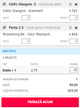 Echipa din Armenia nu a avut o linie grozavă de clasament în deplasare, nici la ea în campionat. A câștigat doar șase din cele 15 jocuri disputate în campionatul inter. Nu credem că Celtic o să întâmpine mari probleme la acest joc, chiar dacă e ca și calificată turul doi al Champions League. Merg pe o victorie în handicap a scoțienilor!