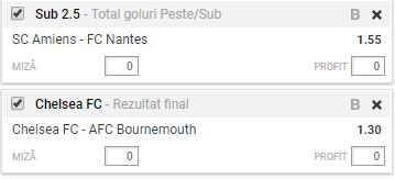 sursa: gsp.ro Biletul Zilei 20.12.2017. Astazi, incepand cu ora 21:50 se disputa intreaga etapa din Franta. Din cele 10 partide programate, iti alegem un singur meci: Amiens – Nantes. Cealalta partida pe care ti-o propunem la biletul zilei vine din Cupa Ligii Angliei. De la ora 21:45, Chelsea primeste vizita lui Bournemouth, in sferturile de finala ale competitiei, numite recent Carabao Cup.