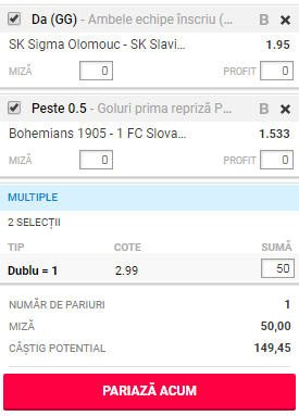 Biletul Zilei 22 iulie Sigma Olomouc – Slavia Praga