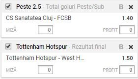 Biletul zilei 25.10.2017 de miercuri este alcatuit, ca de obicei, din doua meciuri, care au cea mai mare sansa de reusita, in opinia noastra: Sanatatea Cluj – FCSB si Tottenham – West Ham.