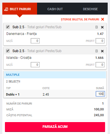 Biletul Zilei 26 iunie 2018. Tichetul de marți este format din două meciuri, ambele de „under 2,5”. Vorbim despre Danemarca – Franța, din grupa C, și despre Islanda – Croația, din grupa D.