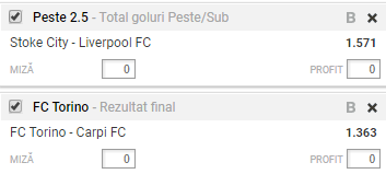 Biletul Zilei 29.11.2017 de miercuri este format din doua meciuri, unul din Anglia si celalalt din Italia: Stoke City – Liverpool si Torino – Carpi.