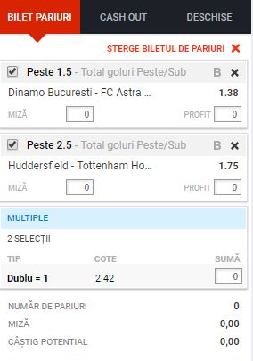 Biletul zilei 30.09.2017. Avem ultimul tichet al lunii septembrie, de duminica intram deja in octombrie. Ti-am ales doua meciuri: Dinamo – Astra si Huddersfield – Tottenham.