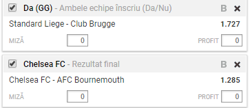 Biletul Zilei 31.01.2018. Miercuri avem din nou o multime de meciuri in Europa. Se joaca in Anglia, In Belgia, in Scotia, in Spania si asa mai departe. Ne vom limita doar la primele doua campionate enumerate. In etapa cu numarul 25 din Premier League, Chelsea primeste vizita lui Bournemouth de la ora 21:45, iar in Belgia, Standard Liege o infrunta pe Club Brugge, in semifinalele Cupei.