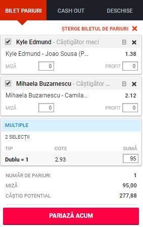 - Tocmai din acest motiv, vom miza pe victoria jucătoarei noastre, cotată cu 2,12 de către Betano.