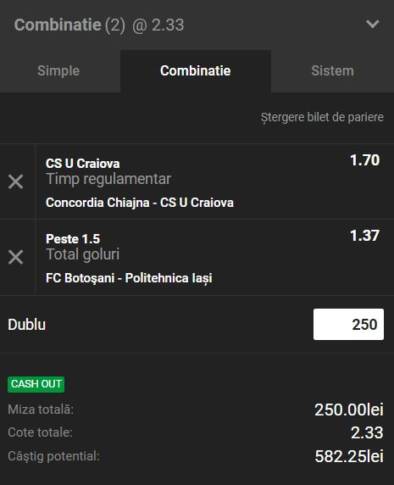 - Depui și pariezi până la 250 de lei pe acest bilet