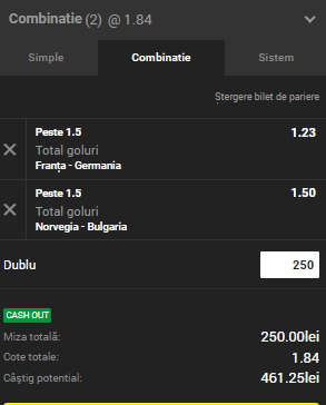 • Depui și pariezi până la 250 de lei pe acest bilet