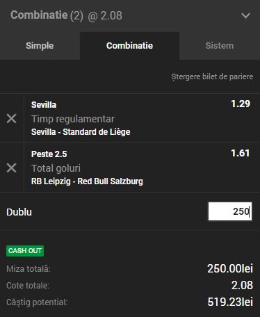 Biletul Zilei Unibet 20.09.2018 e compus din două ponturi pariuri din Europa League care sper să ne aducă profit. Sevilla – Standard Liege şi RB Liepzig – Salzburg în care am mare încredere.