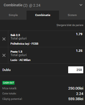 - Depui și pariezi până la 250 de lei pe acest bilet