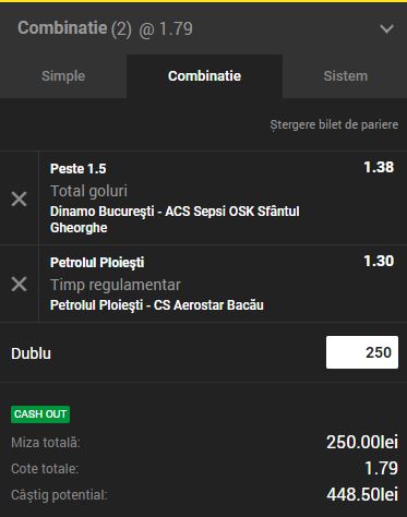 - Depui și pariezi până la 250 de lei pe acest bilet