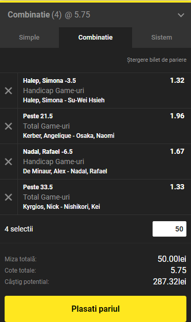 De Minaur – Nadal. Puștiul în vârstă de numai 19 ani a intrat de curând în top 100, ocupând locul 80 mai exact. Îl așteaptă un meci infernal împotriva lui Rafael Nadal, unul dintre marii favoriți la câștigarea turneului de la Wimbledon. Îți recomandăm o cotă de 1.67 pe o diferență de minimum șapte game-uri în meci în favoarea lui Nadal. Chiar dacă e expert pe zgură, Rafa a demonstrat de atâtea ori că se poate descurca de minune și pe iarbă.